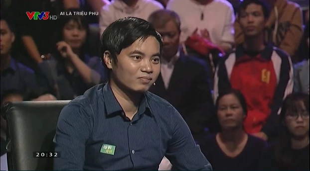 | Câu số 8/15 (10.000.000 đồng) - Không giới hạn thời gian Sử dụng các quyền "50:50" và "Hỏi ý kiến khán giả trong trường quay" Còn 2 quyền trợ giúp (Gọi điện thoại cho người thân và Tư vấn tại chỗ) | |